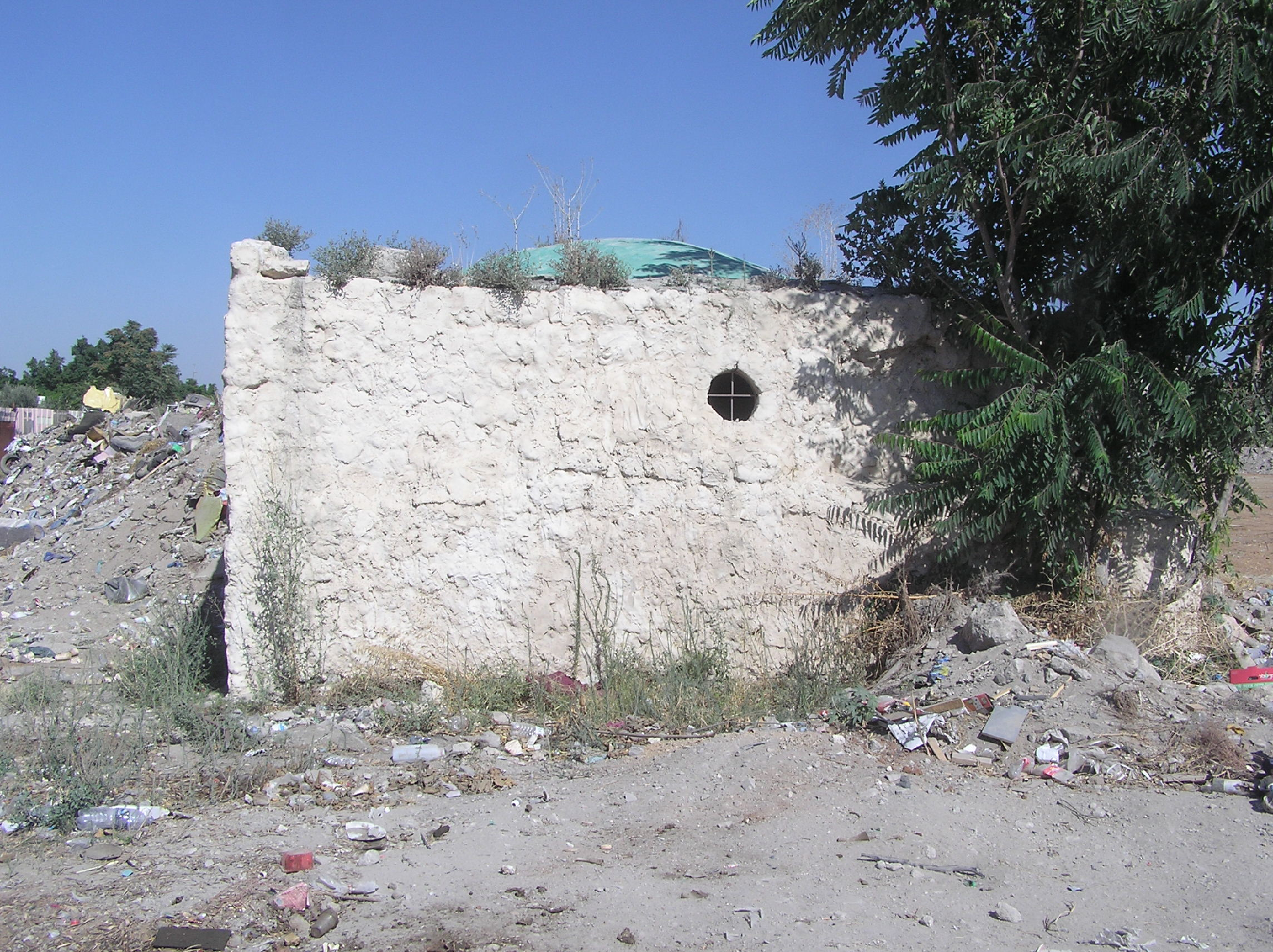 Being in the city, at the wasteland, the maqam is well observable. The Muslims keep on care for it and whitewash the outer walls and inner rooms. A low squatted dome is painted green. A nearby waste site causes some troubles to the monument with waste heaped at the east wall.